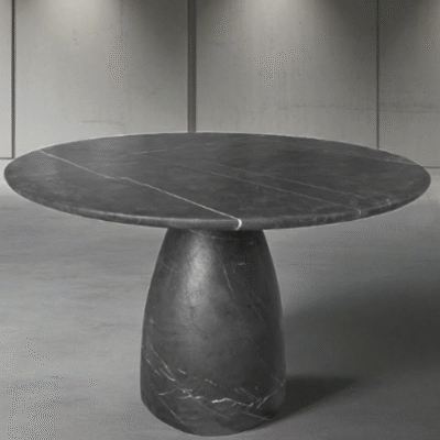Okrągły stół wykonany z marmuru Pietra Grey łączy nowoczesny design z czystymi liniami i naturalnym wykończeniem, które podkreśla piękno każdej żyłki. Jego solidna, zaokrąglona podstawa nie tylko zapewnia stabilność, ale także stanowi efektowny, nowoczesny akcent. Idealny do wnętrz, które cenią sobie ponadczasowy i wyrafinowany charakter