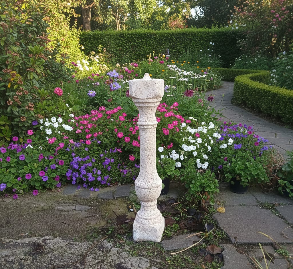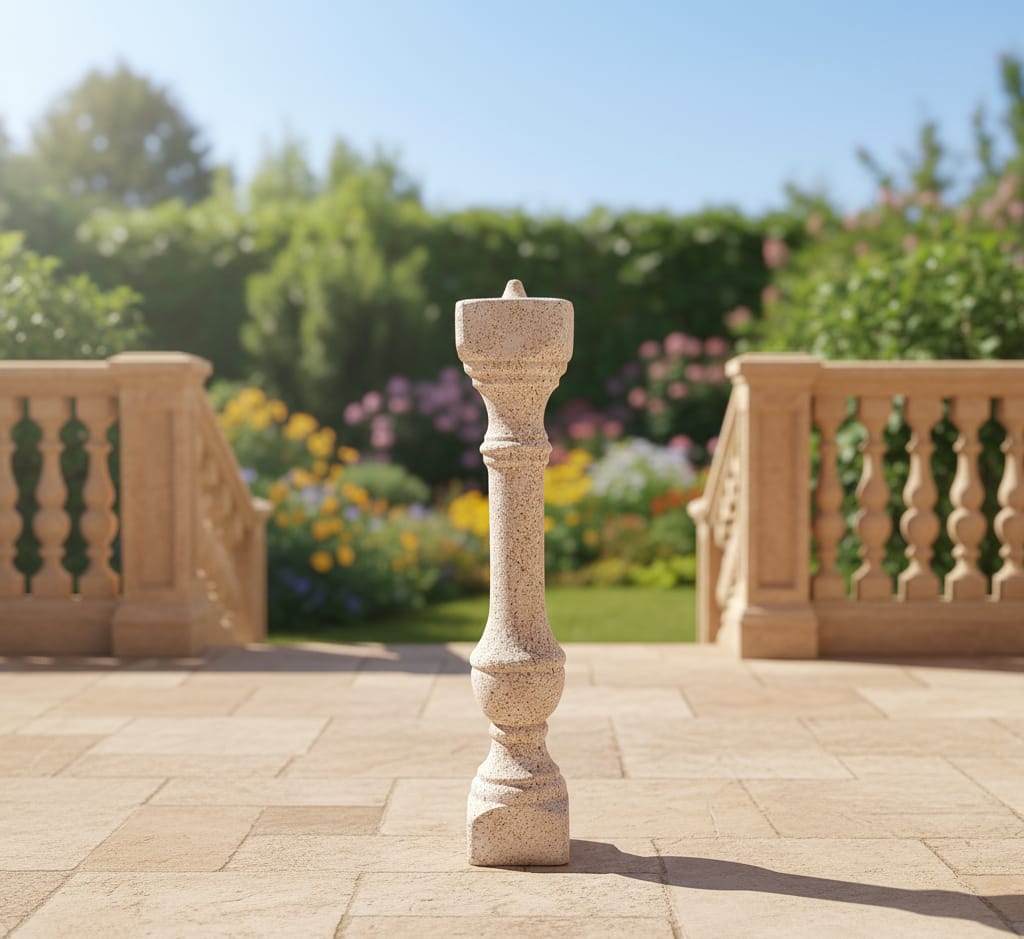 Stylowa balustrada wykonana z kamiennego tworzywa o klasycznym, toczonym kształcie.
