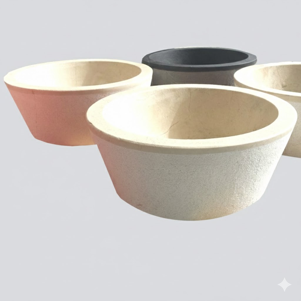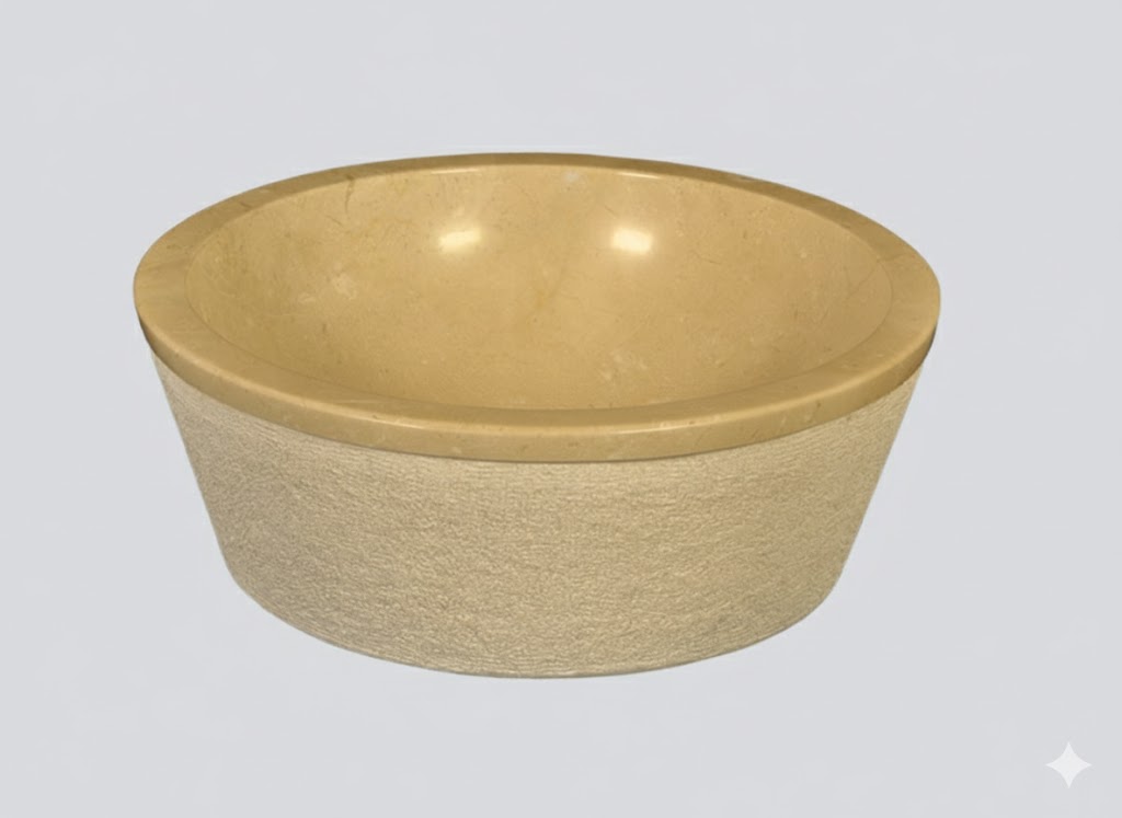 Okrągła umywalka z masywu marmurowego, polerowana wewnątrz i na zewnątrz, młotkowana