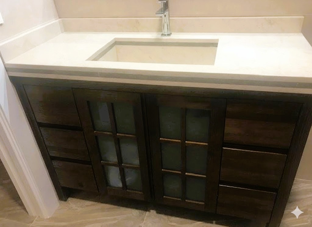 Umywalka z blatem, z elementów klejonych, z otworem odpływowym