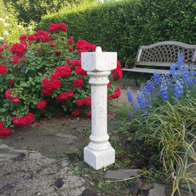 Kolumna Trawertyn T 100 Stylowa kolumna wykonana z kamiennego tworzywa imitującego trawertyn Wymiary : Wysokość : 100 cm Szerokość: 20 cm x20 cm